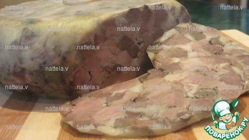 Приготовила вчера вечером, а пробовали сегодня утром. Вкусно. Готовила из свиной рульки и куриной грудки. Рульку варила три часа. Потом, в конце варки, добавила морковь и куриную грудку. Желатин добавила, когда мясо мелко порезала и перемешала. Желатин размешивала в бульоне от варки мяса. С морковью смотрится, как по мне, красивее. Спасибо за рецепт, муж сказал - теперь готовь его всегда!