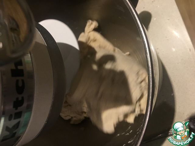 Я начинаю мешать тесто в комбайне, но оно еще остается не однородным и уже домешиваю руками. Если вдруг у вас сразу слепился липкий шарик, то добавляйте муку, тесто должно быть сухим и совсем не липнуть к рукам. Колобок отправляем на 1 час в холодильник.
