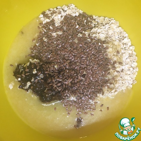 [+5]Сладости достаточно ,овсяные хлопья быстрого приготовления ,льняное семя перекрутила в кофемолке .