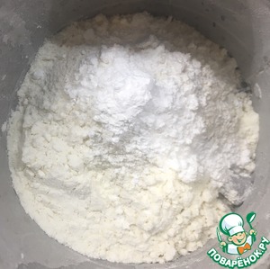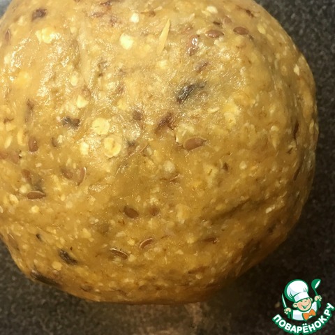Соединяем всё, замешиваем тесто. Убираем тесто в пакет в холодильник на один час, что бы хлопья немного разбухли.