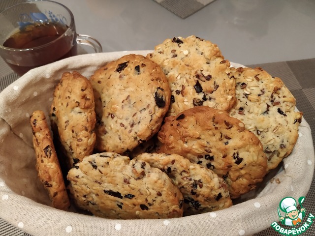 Рецепт «Овсяное печенье с черносливом и льном»: