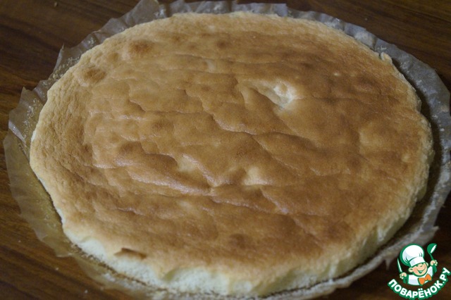 • Выпекаем в духовом шкафу при температуре 180 градусов до слегка коричневого колера, минут 10. Важно не пересушить бисквит.