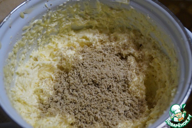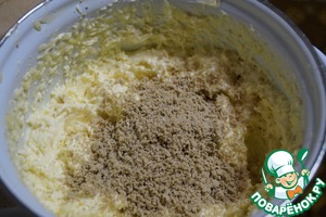 • Затем протираем через сито халву и добавляем её в крем. Хорошо перемешиваем.