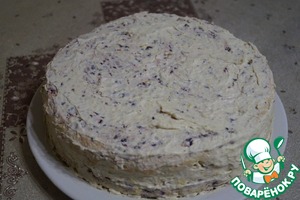 • Сверху торт обильно смазываем кремом со всех сторон.
