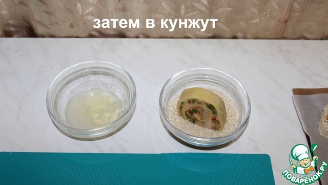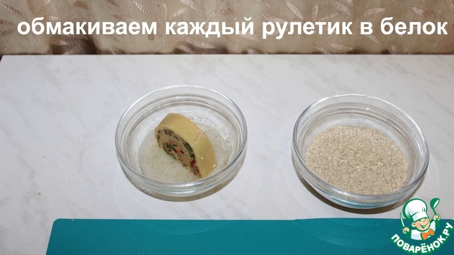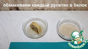 Обмакиваем каждый рулетик в белок.