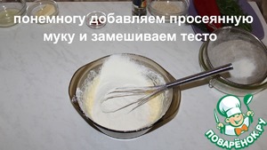 Понемногу добавляем просеянную муку и замешиваем тесто.