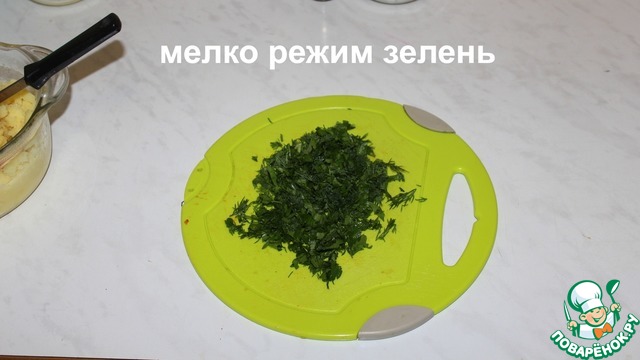 Мелко нарезаем зелень.