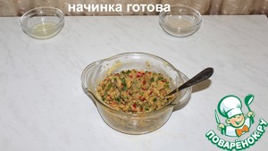В картофель добавляем перец, зелень и специи по вкусу. Начинка готова.