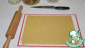 На силиконовом коврике раскатываем тесто в прямоугольный пласт толщиной 3-4 мм.