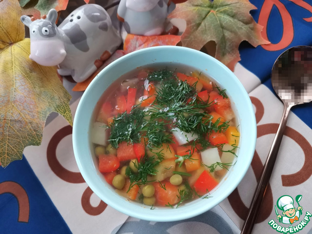 Рецепт супа без зажарки, на воде. Готовится быстро и легко из ингредиентов, которые можно найти в каждом холодильнике.