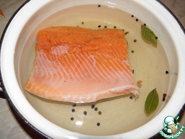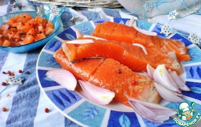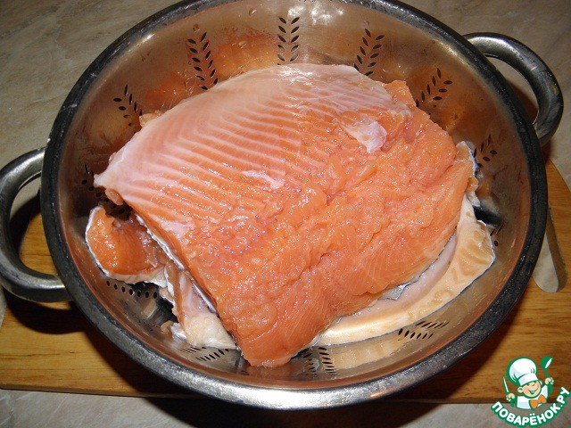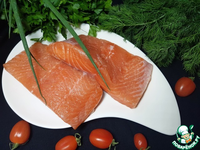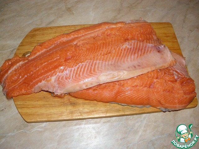 - Рыба (любая красная рыба для засолки (форель, горбуша, семга) приблизительно 2кг) — 2 кг