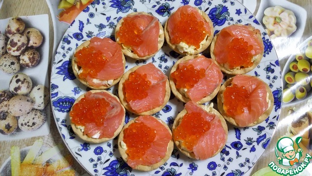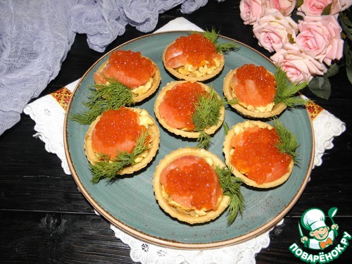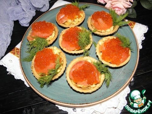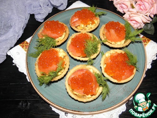 Рецепт «Тарталетки с яичницей и красной икрой»: