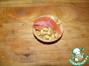 - Рыба (4-6 ломтиков соленой подкопченной красной рыбки (лосось, форель)) — 5 ломт.