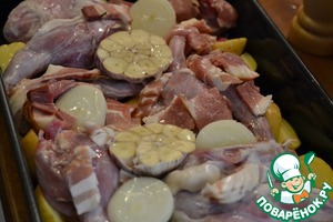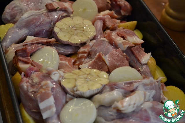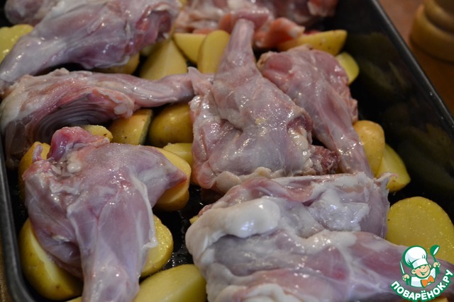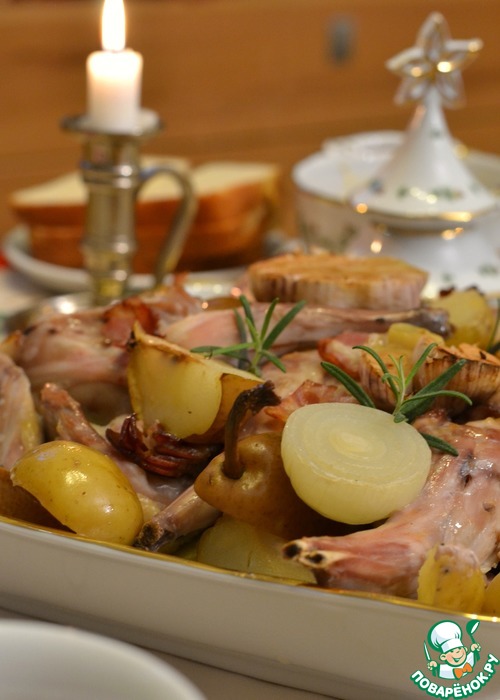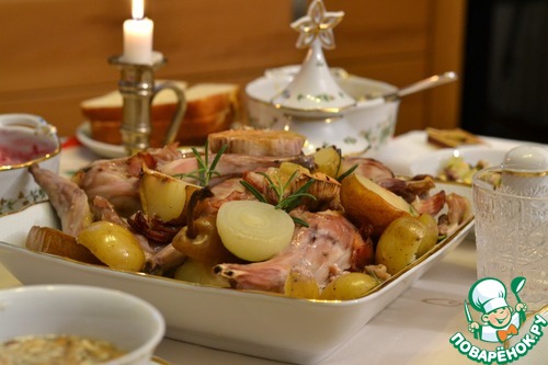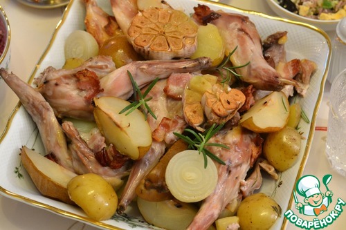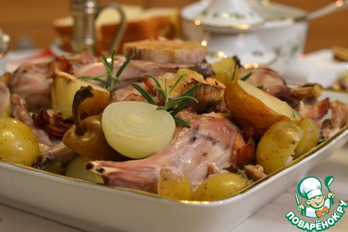Рецепт «Кролик, запеченный с чесноком и грушами»: