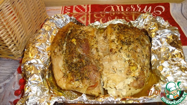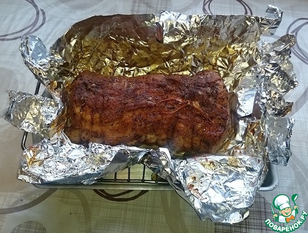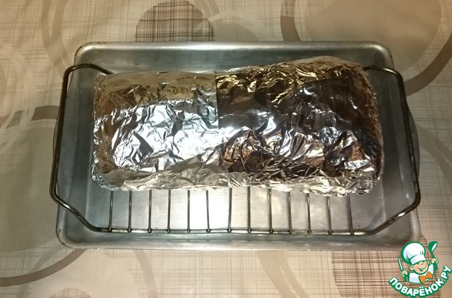 Плотно заворачиваем мясо в фольгу и ставим в разогретую до 180 С духовку на 2 часа.
