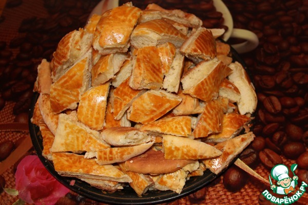 Готовые лепешки можно, конечно, есть, откусывая с целой, как делала Нина из "Кавказской пленницы", но это как-то не эстетично. Милана советует порезать каждую лепешку небольшими ромбиками. У меня получился большой поднос с горой! Был... Теперь там почти ничего не осталось) Всем, кто пробовал, было так вкусно, что они как-то сами собой незаметно съелись)