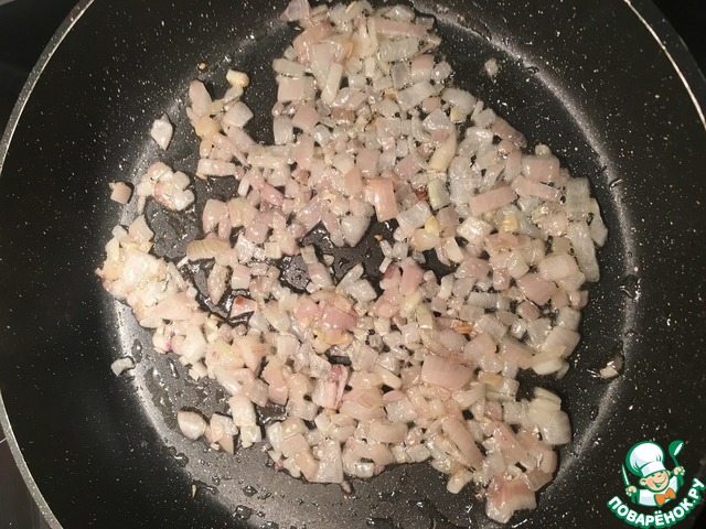 На небольшом количестве растительного масла на среднем огне поджариваем лук до прозрачного состояния