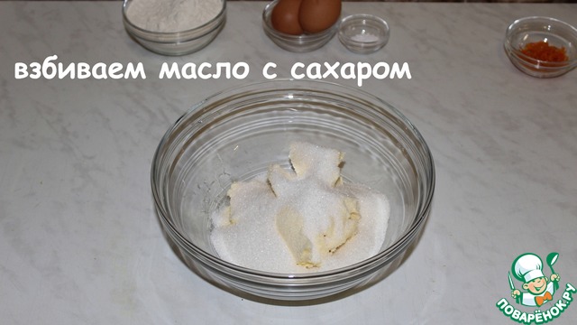 Готовим тесто. Сливочное масло взбиваем с сахаром.