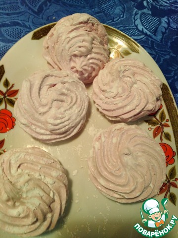 9. После высыхания, каждой зефирное находим половинку и склеиваем нижними частями друг к другу. Обваливаем в сахарной пудре.