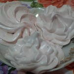 5. Одновременно с приготовлением сиропа в чаше блендера смешиваю ранее приготовленное пюре с сахаром и 2 охлажденных белка и взбиваю до устойчивых пиков