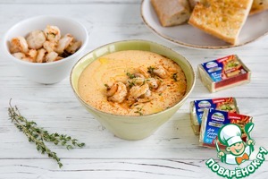 Рецепт «Сырный крем-суп с чесночными креветками»: