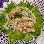 добавить свежий огурец. Я нарезала небольшими кусочками.