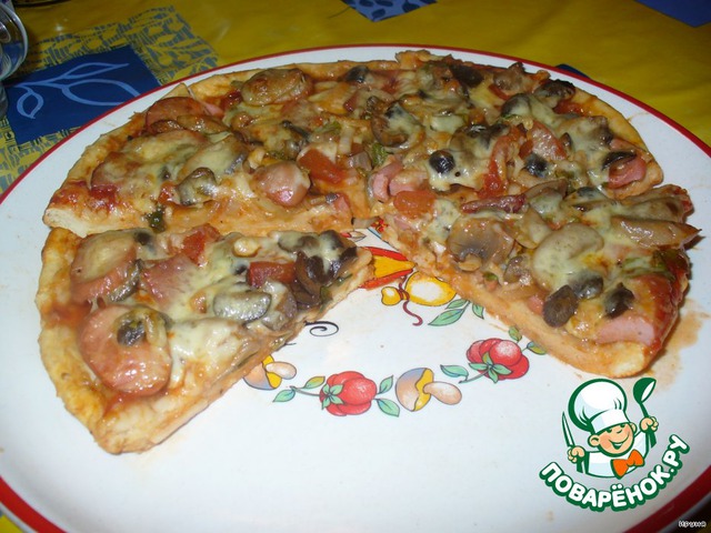 Рецептов пиццы великое множество, предлагаю свой вариант! Точнее, его придумала давно моя мама, теперь мы обе готовим по этому рецепту! Вкусно! Съедается мигом! Ингредиенты даю примерные, так как пиццу делаю всегда "на глаз".