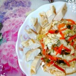 Перец не сыпала, полила соус "острый чили с чесноком".