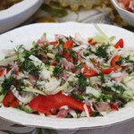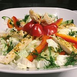 добавила сельдерей ,вместо болгарского перца - острый и яичный блинчик нарезала соломкой !