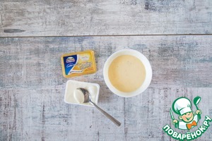 Слегка взбейте яйца, смешайте с плавленым сыром и жареным луком с паприкой.