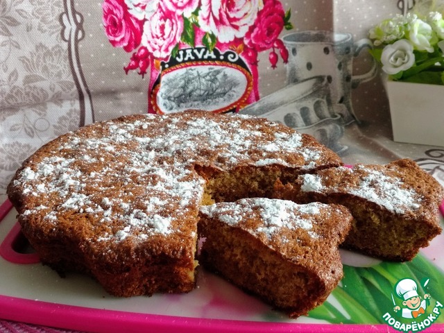 Готовому кексу дать отдохнуть в форме минут 10, посыпать сахарной пудрой и подавать.