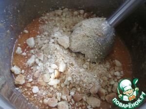 Хурму пробить блендером, раскрошить печенье для придания стабильности начинке.