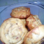 Смешайте сыр с простоквашей, добавьте желтки с маслом и мучную смесь, быстро вымешайте, не особенно тщательно. Затем добавьте бекон. В последнюю очередь аккуратно вмешайте белки.
