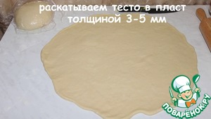 Раскатываем тесто в пласт толщиной 3-5 мм.