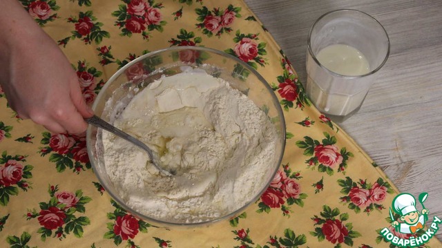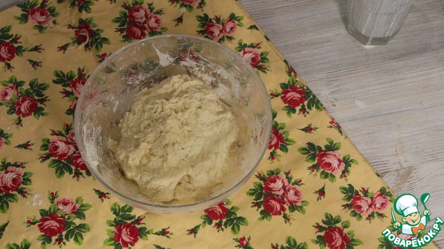 Замешиваем тесто. Тесто получается липким. Оставляем тесто на время.