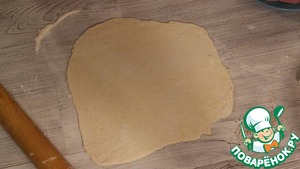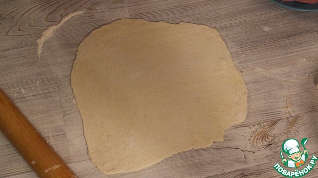 Делим тесто на 2 части. Раскатываем их тонко до толщины примерно 0,4…0,5см.