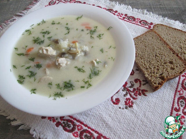 Сливочный суп с рисом и грибами