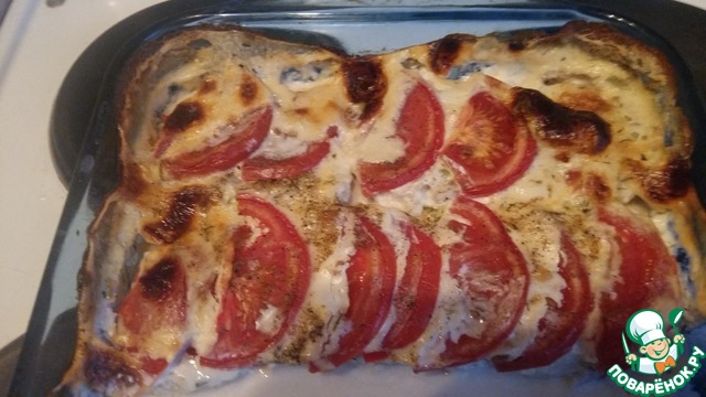 Рецепт «Рыба, запеченная с помидорами в сырном соусе»: