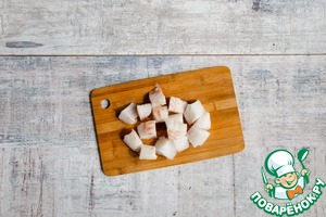 Разогрейте духовку до 200 °С, по возможности с грилем. Нарежьте рыбу крупными кубиками, посолите и поперчите.