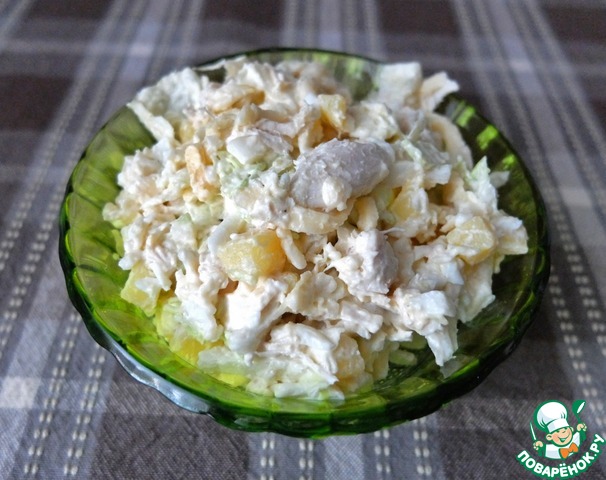 Хочу предложить вкусный, воздушный, лёгкий салат с куриной грудкой и пекинской капустой. Салат не тяжелый. Майонезную заправку можно заменить сметаной или любимым вами соусом. За основу взяла рецепт Анны, огромное ей спасибо. Автор предлагает уложить ингредиенты слоями для праздничного стола, но у меня он был на вынос и я упростила приготовление.