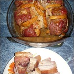 [+4]Внесла в рецепт небольшое дополнение,"подушку" для мяса сделала не только из яблок,я добавила цветной капусты и немного винограда."Подушечка" вышла необыкновенно вкусной, пропитанная мясным соком. Фотография у меня не очень вышла,но там все просматривается.