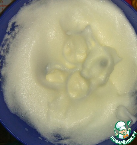 В желтки добавить муку с крахмалом, хорошо перемешать. Частями аккуратно добавить белки.