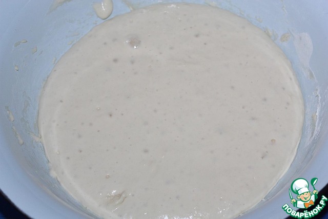 Опара - 2 ст. л. закваски, 100 мл воды, 100 г муки. Опара ставится на 8-12 часов.