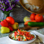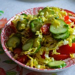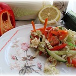 Предлагаю рецепт простого, свежего, сочного салата из пекинской капусты с огурцом, морковью, болгарским перцем и помидором. Можно использовать в качестве перекуса или гарнира к мясу, рыбе.