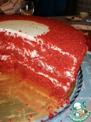 Пахту сделала сама вместо кефира. Краситель Americolor super red. Сливок в крем взяла 500мл. Всё остальное по рецепту.