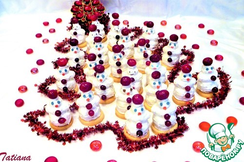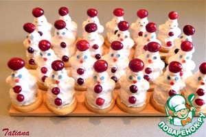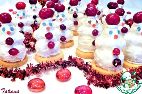 Рецепт «Пирожные "Миндально-клюквенные снеговички"»: