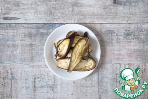 Разогрейте духовку до 200 °С. Нарежьте баклажаны вдоль ломтиками толщиной 2 см. Смажьте их маслом, посолите. Выложите на застеленные пергаментом противни в один слой и поставьте в духовку. Запекайте до мягкости и румяных краешков, примерно 20 мин.