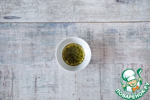 У тимьяна и розмарина удалите стебли, листочки порубите вместе с чесноком и солью как можно мельче. Смешайте с 3 ст. л. оливкового масла.
