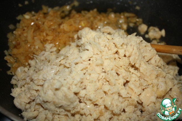 Сыр мелко нарезаем и вмешиваем в массу.