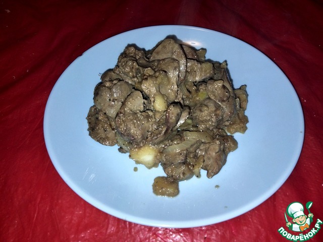 Рецепт «Печень куриная под яблочно-медовым соусом»: